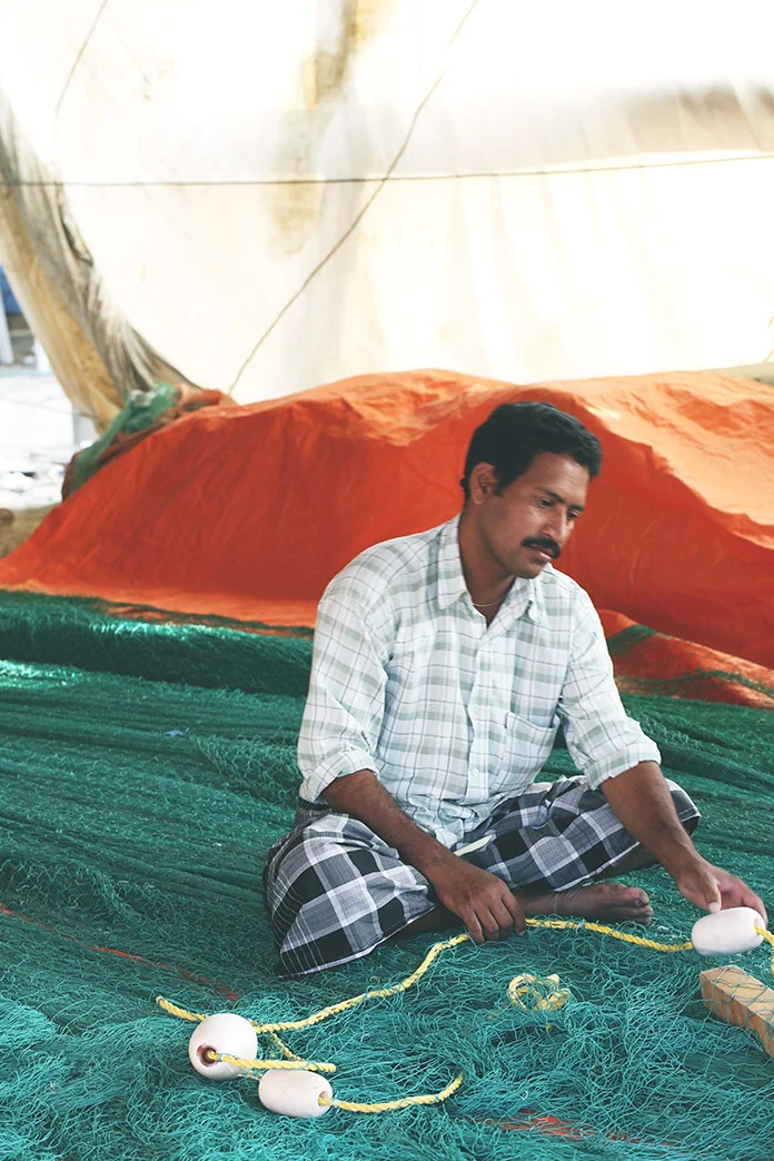 Upon our arrival at 4:10 pm, the fishermen are weaving their nets, the cats are taking a snooze but no one is in site.