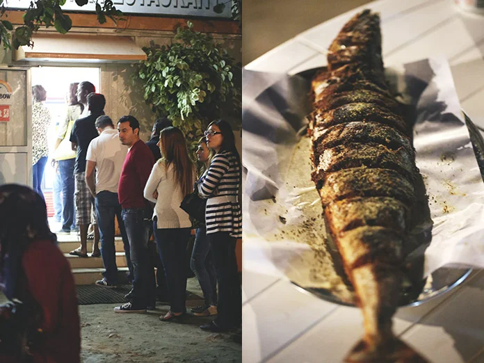 - When you’re seated and have ordered your fish, a waiter will approach your table to make the order of sides being salad, bread and rice.