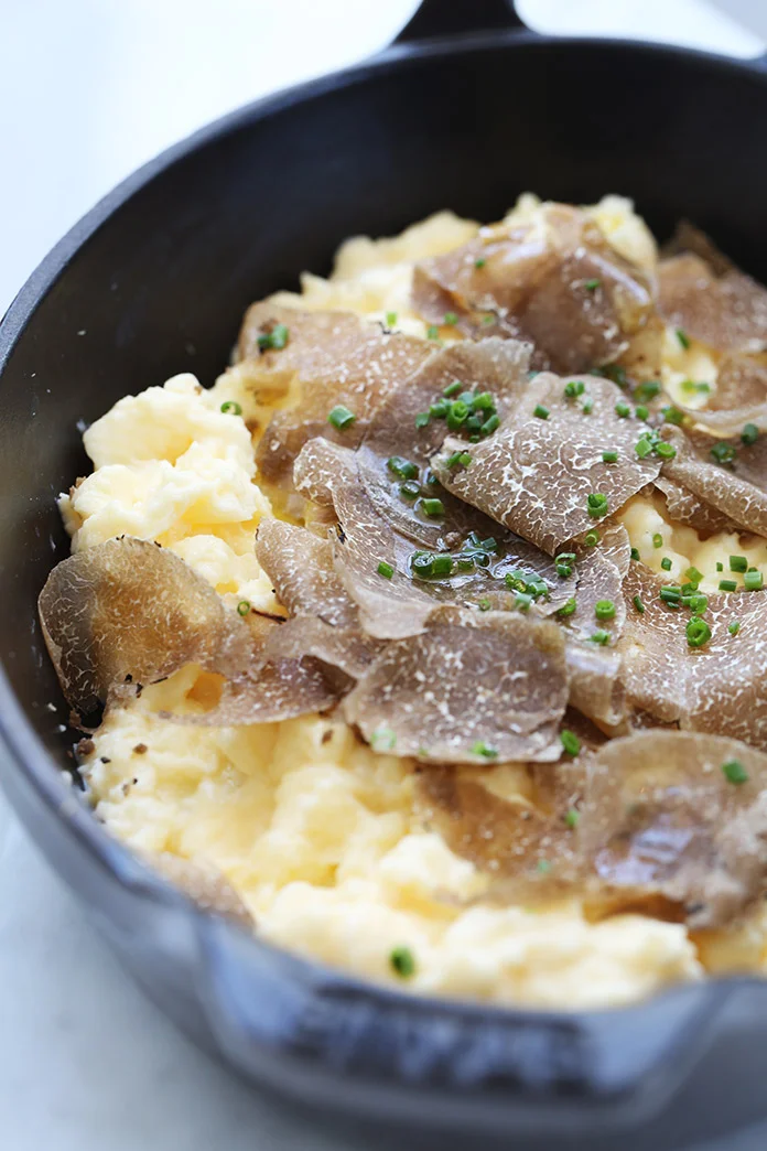 Keeping with my reason to get out of bed, I begin with an order of truffle-topped scrambled eggs.